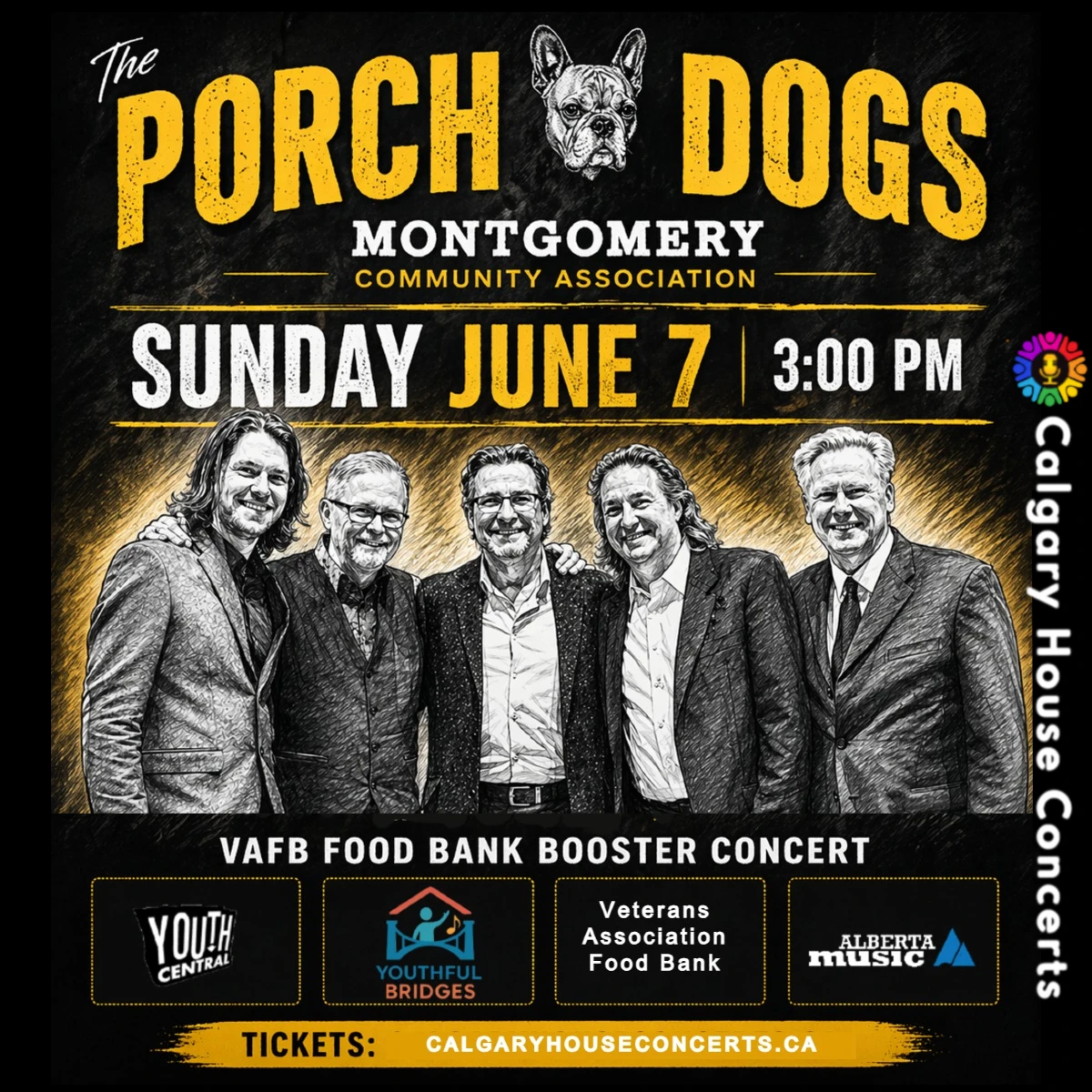 I’m thrilled to have The Porch Dogs come to CHC to introduce their new lineup and the possibility of their first album release — a fresh chapter of Calgary blues rooted in tradition and energized by emerging talent, delivered in a warm, intimate live setting.